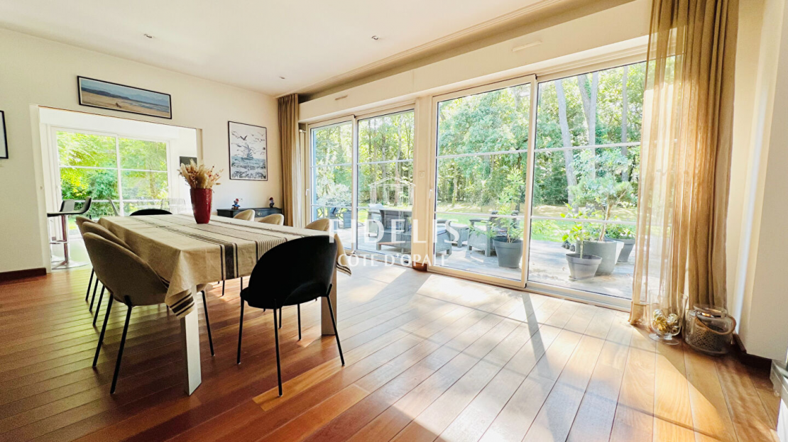 L’agence Fidelis Côte d’Opale vous propose cette magnifique villa de plus de 260 m2 située dans une allée en cœur de forêt du Touquet et proche du centre Tennistique.