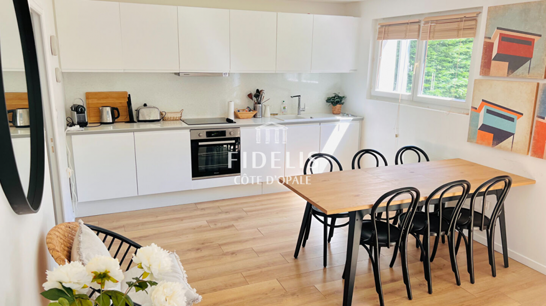 L’Agence Fidelis Côte d’Opale vous propose cette jolie maison de 86 m2 rénovée et décorée avec goût.
