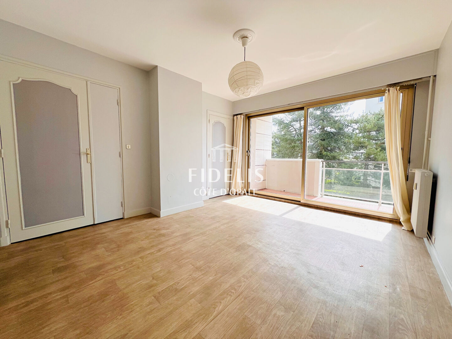 Un hall d’entrée avec placard, une belle pièce de vie lumineuse ouvrant sur une loggia avec vue dégagée sur le parc de l’Hermitage, une cuisine indépendante, un dégagement avec WC, une salle de bains, et une chambre bénéficiant également d’une loggia avec vue sur le mythique Westminster.