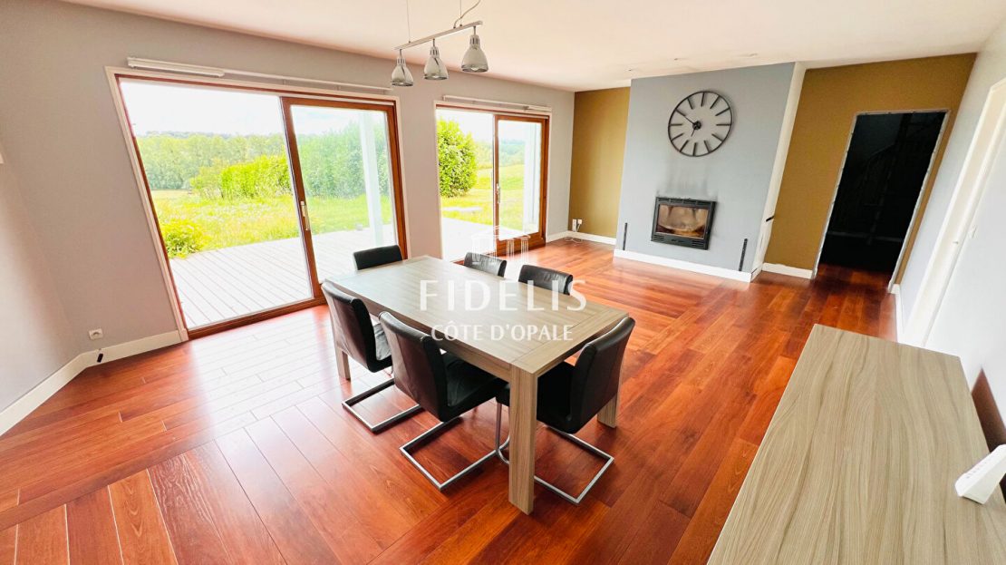 Dans un charmant village à une vingtaine de minutes de Montreuil sur Mer, l’agence Fidelis Côte d’Opale vous présente cette jolie villa de type Coquart de 164 m2.