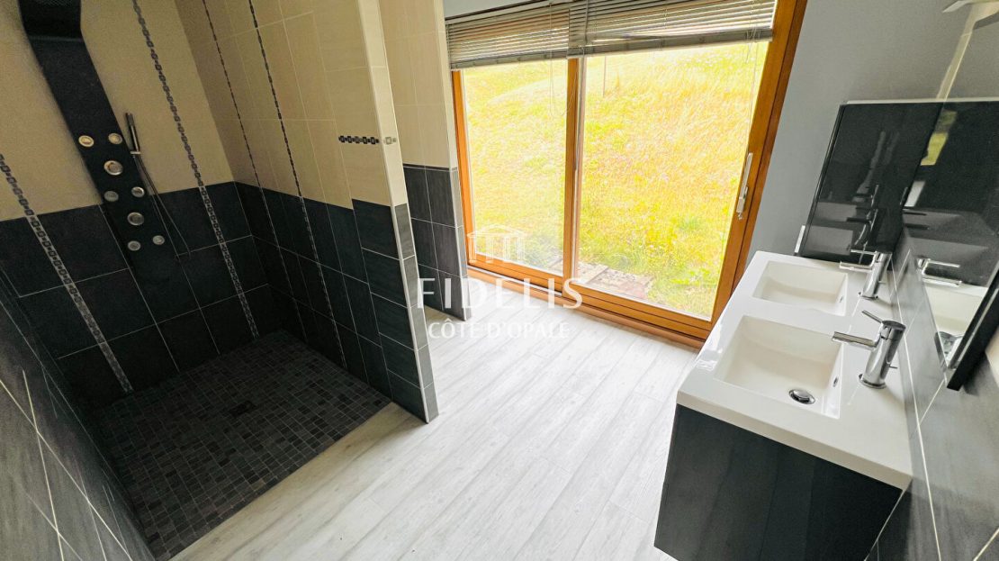 Spacieux hall d’entrée desservant une pièce de vie baignée de lumière avec ses grandes ouvertures vers l’extérieur, une cuisine indépendante et équipée, quatre chambres, une salle de bains, une salle de douches avec douche à l’italienne, un bureau et une arrière cuisine pouvant faire office de buanderie ou autre.