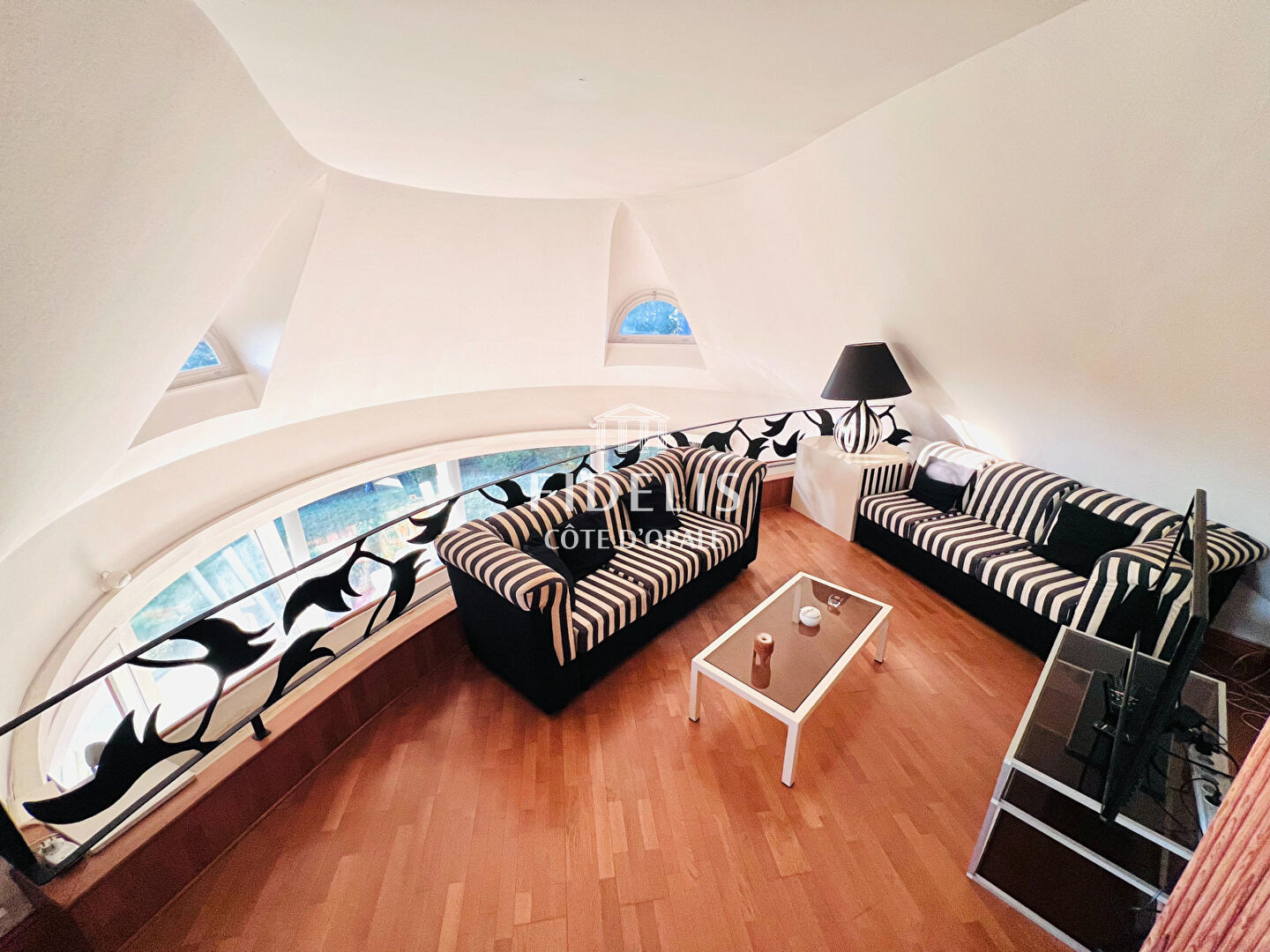 À l’étage, un salon intimiste surplombe le séjour et dessert trois chambres, dont une avec salle d’eau et WC, ainsi qu’une salle de bains et un WC séparé.